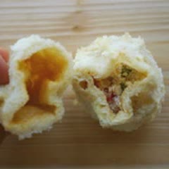 Từng túi đậu hũ bọc thịt gà được chiên chín vàng ruộm, giòn tan chỉ nhìn thôi đã thấy thèm. Món này chấm cùng tương ớt, nước tương thì rất đưa cơm đấy!