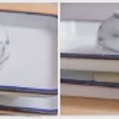 Đậu hũ đặt lên khay rồi dùng một khay khác có chứa nước đè lên rồi cho vào lò vi sóng