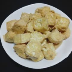 Đặt chảo lên bếp, đun nóng dầu rồi lần lượt cho đậu vào chiên vàng đều. Vớt đậu ra để ráo dầu.
