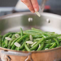 Cho dầu olive vào đun, thêm đậu que vào đảo đều, khi đậu que hơi chín, cho tỏi thái lát vào, đập nắp khoảng 5 phút, cuối cùng xóc đều đậu que với muối, bột ớt nữa là xong.