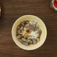 Tôm tươi nếu mua được con nhỏ thì chỉ cần cắt bỏ đầu, đuôi và chân, giữ nguyên thân tôm. Nếu tôm lớn thì thái tôm ra thành những miếng nhỏ. Thịt ba chỉ thái miếng nhỏ. Cho 250gr tôm và 250gr thịt ba chỉ ra 2 tô riêng, mỗi tô ướp với 10gr hành tím băm, 10gr tỏi băm, 1 muỗng canh đường, 1 muỗng canh nước mắm, 1/2 muỗng canh hạt nêm, 1 muỗng cà phê tiêu. Riêng tô thịt ba chỉ ướp thêm 5gr ớt xắt nhỏ để phần nhân tô điểm chút hương vị cay the ngon miệng hơn.