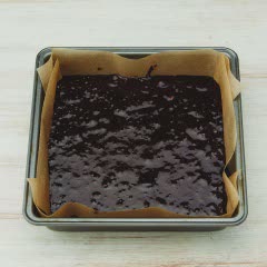 Tiếp tục cho vào hỗn hợp một ít hạt óc chó giã nhuyễn, dùng phới dẹt trộn thêm một vài lần cho hỗn hợp đồng nhất. Có thể thay hạt hạt hạnh nhân, hạt điều, hạt hồ đào,… Sử dụng một khuôn vuông kích thước 20x20cm để nướng bánh. Lót giấy nến vào khuôn, trút phần bột vào và dàn phẳng mặt bột.