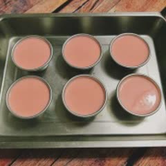 Cho 70g đường trắng vào nồi cùng với 40ml nước, bật bếp đun cho hỗn hợp nước đường sôi lên rồi cho 1 muỗng canh nước cốt chanh vào cùng, lắc nhẹ nồi và tiếp tục nấu. Khi hỗn hợp nước đường chuyển màu cánh gián thì thêm 20ml nước sôi, lắc nhẹ nồi cho hòa đều là tắt bếp. Múc caramel chia đều ra các cốc đựng bánh rồi để cho caramel nguội sẽ đông lại.