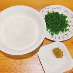 Hành lá thái nhỏ. Rây 200g bột mì, 3g muối vào tô, rót từ từ nước sôi vào tô bột, khuấy vào dùng tay nhồi cho bọt nở và thành khối đồng nhất là được. Tránh cho 1 lần nhiều nước sôi bột sẽ nhảo nhé!