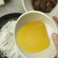 Đánh tan lòng đỏ trứng và cho vào hỗn hợp, cho thêm bơ tan và nước cốt chanh quậy đều.