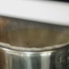 Múc 1 ít hỗn hợp bột vào tô bơ trà sữa ấm đã chuẩn bị, trộn đều. Sau đó đổ ngược hỗn hợp vào tô bột rồi trộn lên lần nữa cho hòa quyện. Chuẩn bị sẵn khuôn tròn 16cm đã lót giấy nến chống dính, đổ hỗn hợp bột vào khuôn sau đó cho vào lò nướng 40 phút ở 170 độ C. Đợi khi bánh trà sữa trân châu đường đen chín lấy ra khỏi khuôn, để nguội.