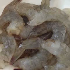 Nếu dùng tôm đông lạnh thì cho tôm ra ngoài rã đông. Nếu dùng tôm tươi bóc vỏ, bỏ đầu, rút chỉ đen ở lưng tôm. Ướp tôm với hạt nêm, tiêu trong khoảng 5 phút.