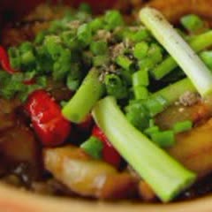 Lúc này nước kho sẽ keo lại, thịt cá bống và thịt ba chỉ săn, thấm gia vị. Trước khi nhắc xuống ăn rắc lên cá 1 ít hành lá và tiêu cho dậy mùi.