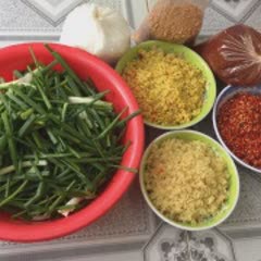 Hành lá: Rửa sạch, cắt khúc. Bỏ phần gốc, chỉ lấy phần lá thôi nhé.