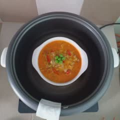 Chả trứng đã chín, mở nắp nồi, đánh tan lòng đỏ trứng còn lại và phết đều lên mặt chả. Đậy nắp lại và mở lửa hấp thêm 1p là mặt trứng chín. Hoàn tất, tắt lửa.