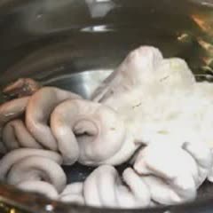Đun nồi nước sôi, cho gan và ruột heo vào luộc chín thì vớt ra, cắt nhỏ vừa ăn.
