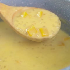 Dọn chè ra chén, bạn có thể thưởng thức chè nóng hay lạnh tùy theo sở thích và cảm nhận. Múc một muỗng thưởng thức, bạn sẽ cảm nhận được ngay vị ngòn ngọt, beo béo của nước cốt dừa, sữa tươi và chua nhẹ đặc trưng của xoài xen kẽ trên đầu lưỡi sẽ khiến cho bạn càng ăn càng mê. Như vậy với cách làm trên, bạn chỉ cần một chút ít thời gian là đã có ngay nồi chè vô cùng thơm ngon và hấp dẫn cho cả gia đình thưởng thức.