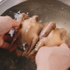 Nồi chim luộc sôi thì vặn lửa đun chừng 15 phút thì tắt bếp. Vớt chim ra để ráo. Chim vớt ra thả vào âu nước đá lạnh, rửa sạch lại chim lần nữa để loại bỏ tạp chất. Sau đó để chim nguội hẳn mới vớt ra, để vào rổ cho ráo.
