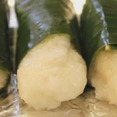 Khi chuối đã chín thì bóc bỏ lớp lá chuối, dùng kéo cắt nhỏ chuối bọc nếp ra đĩa. Rắc dừa bào sợi, đậu phộng rồi chan nước cốt dừa lên. Dùng nóng.