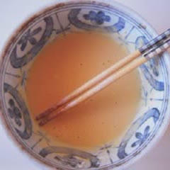 Lấy một bát khác, đập vào một quả trứng rồi đánh tan. Tiếp tục cho bột chiên và ít nước. Khuấy đều bằng đũa cho đến khi bạn được hỗn hợp bột trứng mịn, mượt. Bạn có thể kiểm tra, nếu bột chảy liên tục thành dòng là được.