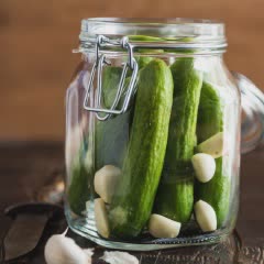 Dưa leo rửa sạch, lau khô, cho vào 1 cái lọ có nắp đậy kín. Cho tỏi, nước tương, giấm vào lọ. Nếu muốn đậm đà hơn, bạn có thể tiếp tục thêm nước tương và giấm theo tỷ lệ 1:3. Ngâm trong ít nhất 3 ngày, tốt nhất là 1 tuần. Nếu muốn ngâm nhanh trong 1 ngày thì bạn chẻ nhỏ dưa leo rồi mới ngâm nhé!