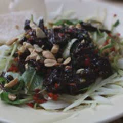 Gỏi khô bò là món ăn vặt được rất nhiều bạn trẻ yêu thích. Với sự kết hợp hoàn hảo của đủ vị chua chua của nước chấm, vị béo bùi ngọt thơm của gan, đu đủ dai giòn sần sật. Ăn kèm gỏi với bánh phồng tôm mặn mặn và rau răm, thêm tương ớt cay nồng sẽ là một món ăn vặt mà bạn không thể nào dừng đũa. Ăn ở ngoài thì không đảm bảo vệ sinh, nay RabbitCooking đã có công thức chuẩn vị với cách làm đơn giản, các bạn có thể thỏa sức ăn mà không còn nghi ngại.