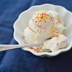 Kem vị vani đã hoàn thành. Rắc thêm kẹo trang trí, cốm màu lên trên nếu thích nhé!