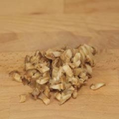 Nấm hương ngâm cho mềm, sau đó băm nhỏ. Trộn đều 200g thịt heo bằm, 1 quả trứng, 15ml nước tương, 15ml rượu gia vị và 10g bột bắp, ướp trong 20 phút. Thêm nấm hương vào trộn đều.