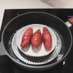 Khoai lang rửa sạch, sau đó cho vào nồi hấp cách thủy trong khoảng 10-15 phút cho khoai chín rồi tắt lửa, gắp khoai ra. Chờ khoai nguội hẳn rồi cắt thành từng miếng vừa ăn.