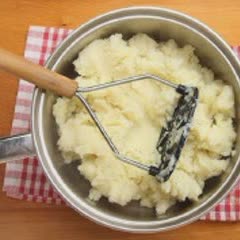 Vớt khoai tây đã luộc sang nồi khác rồi nghiền nhuyễn cũng với 80g bơ, 1/2 muỗng cà phê muối và 1/4 muỗng cà phê tiêu.