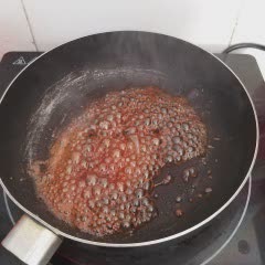Bật bếp, bắt chảo lên bếp. Cho vào chảo 1 muỗng canh đường để thắng nước màu. Hạ nhỏ lửa, đun cho đường cháy cho đến khi có màu cánh gián. Tắt bếp, cho gà đã ướp vào xào săn.