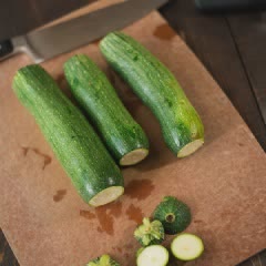 Bí ngòi rửa sạch, bào mỏng. Bạn bắc 1 nồi nước lên bếp, khi nước sôi, cho bí ngòi vào luộc khoảng 1 phút là được. Bí ngòi rất nhanh chín. Sau đó vớt bí ngòi ra, để ráo.