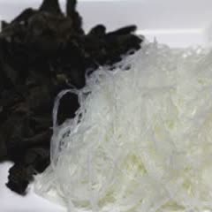 Mướp hương gọt vỏ, rửa sạch, cắt khúc khoảng 1-2cm. Nấm mèo, miến ngâm nước ấm cho mềm, cắt nhỏ.