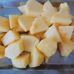 Thơm gọt vỏ, bỏ lõi thái miếng, sau đó băm hay xay hơi nhỏ, vắt bỏ nước. Gừng gọt vỏ, rửa sạch, thái sợi mỏng, luộc sơ qua nước sôi 3 phút, đổ ra rổ để ráo.