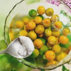 Dùng dao khứa 4 đường nhỏ theo chiều dọc trái tắc, tiếp theo ấn cho trái tắc hơi dẹt lại, lấy hết hạt tắc bỏ đi. Cho tắc vào tô sau đó bạn chắt lấy nước vôi trong đổ vào ngập tắc, ngâm qua đêm hoặc 6-8 tiếng. Vớt tắc ra rửa sạch vài lần cho hết mùi vôi rồi để ráo nước.
