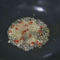 Đun nóng 30-40ml dầu ăn, cho tỏi, ớt đã cắt nhỏ vào đảo đều cho dậy mùi thơm. Nêm nếm gia vị sốt cho nấm kim châm nướng gồm: 1.5 muỗng canh nước tương, 1.5 muỗng cà phê đường, 1 muỗng cà phê dầu hào và chút nước lọc, đun sôi cho tan gia vị rồi tắt bếp.