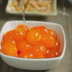 Nước đường như thế nào là đạt? dùng 1 chén nước trong, khi đường bắt đầu chuyển sang màu cánh ván, cho 1 giọt đường vào vào nước, nếu đường hoà tan luôn vào nước thì tiếp tục nấu. Nếu đường rớt xuống đáy, không hoà tan nhưng không tạo thành viên tròn là nước đường đã đạt.
