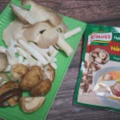 Rửa sạch các loại nấm. Cắt bỏ chân nấm rồi cắt nhỏ vừa ăn. Cho ít dầu vào chảo, phi thơm đầu hành, rồi cho toàn bộ nấm vào xào chín. Nêm nếm 1 ít hạt nêm chay Knorr vào nấm để nấm đậm đà hơn, đảo đều rồi tắt bếp.
