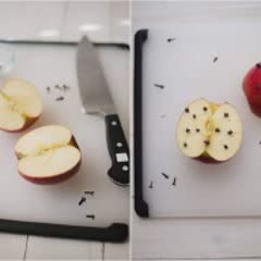 Cam, táo rửa sạch. Táo cắt đôi. Cam cắt là 4. Xếp cam và táo vào nồi, đổ nước ép táo vào, sau đó cho đường nâu, bạch đậu khấu, bột quế, thanh quế và đinh hương vào. Nấu ở mức nhiệt độ thấp trong 20 phút.