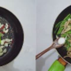 Rau muống rửa sạch thái khúc, tỏi bóc vỏ thái lát, gừng thái sợi, ớt khô cắt làm đôi hoặc làm 3.