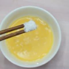 Trứng gà đánh tan, cho vào một nhúm muối, đánh đều.