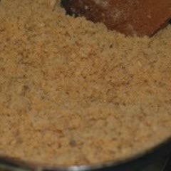 Lấy cá ra, dùng chày giã nhỏ cá hồi thành những mảnh vụn. Làm nóng dầu ăn trong chảo, cho cá hồi, 2 muỗng canh nước mắm vào, đảo đều đến khi ruốc cá hồi khô lại. Dùng muỗng chà, ép cá xuống chảo để ruốc cá hồi nhanh khô.