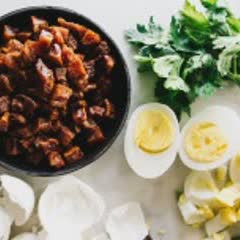 Không tốn bao nhiêu thời gian là bạn đã có ngay cho mình món salad trứng khoai tây lạp xưởng bùi béo, bắt vị cùng sốt mayonnaise thơm lừng, ngon ngất ngây đấy.