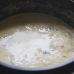 Bắc nồi lên bếp, cho khoai tây và nước vào đun sôi khoảng 15 phút, sau khi khoai sôi, bạn vặn nhỏ lửa và cho hạt nêm, thịt nguội cắt nhỏ, hành lá băm vào. Dùng nĩa nghiền nhuyễn khoai tây và nấu thêm 10 phút nữa. Cuối cùng cho sữa vào và tiếp tục đun 2 phút là hoàn thành.