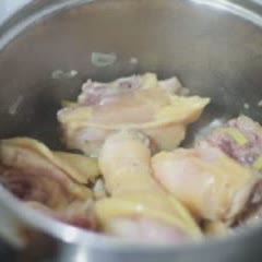 Thêm nước vào xâm xấp, vừa ngập thịt gà, mở lửa to đun sôi. Khi nồi gà sôi thì mở vung, giảm xuống lửa vừa, dùng muôi hớt bỏ bớt mỡ và bọt, sau đó thêm hạt sen vào nồi gà.