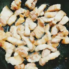 Đặt chảo lên bếp rồi cho thịt ba chỉ vào xào để thịt ra bớt mỡ, đảo đều và xào cho thịt chuyển màu xém vàng mới cho gừng, tỏi, ớt, hành lá vào xào cùng cho thơm mới cho dưa muối mặn vào đảo đều. Tiếp theo bạn nêm nước tương, muối, đường, hạt nêm, rượu trắng rồi đảo đều xào cho nguyên liệu ngấm đều gia vị.