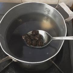 Vớt trân châu ra và xả lại với nước lạnh để không bị dính. Đổ hết phần đường đã chuẩn bị vào cho trân châu có bị ngọt.