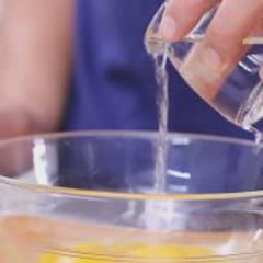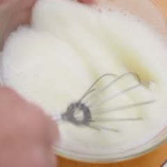 Thêm 15ml nước trong lòng đỏ trứng và đánh đều lên.