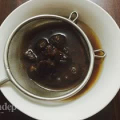 Cho trứng cút lộn đã chiên sơ vào chảo sốt me, om nhỏ lửa để trứng ngấm vị sốt me và săn vào, nước sốt sánh đặc. Cho gừng cắt sợi vào đảo đều.