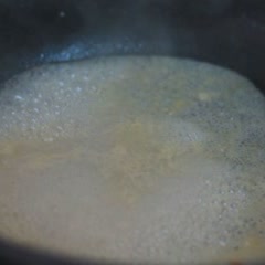 Để lại trong chảo 2 muỗng canh dầu ăn, cho chao vào cùng với 2 muỗng canh nước lọc. Thêm đường và tương ớt.