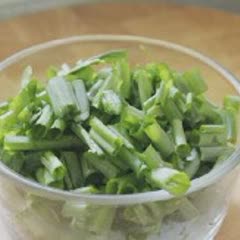 Cà chua rửa sạch, bỏ ruột, cắt nhỏ. Hành lá rửa sạch, cắt khúc nhỏ.