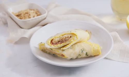 Bánh trứng cuộn thịt xông khói với cách làm làm đơn giản, bánh chiên 2 lớp gồm 1 lớp bột và 1 lớp trứng độc đáo cho màu sắc khá bắt mắt, kẹp cùng chà bông, phô mai lá và thịt xông khói trông cực hấp dẫn. Đây là món ăn sáng thích hợp cho các chị em bận rộn đấy!
