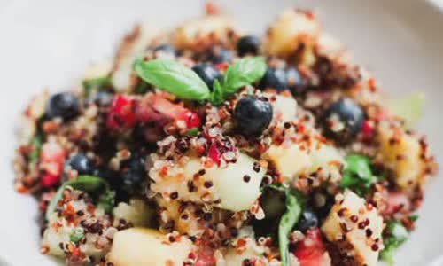 Salad quinoa trái cây với sự kết hợp giữa hạt diêm mạch cùng việt quất, dâu tây, xoài, dưa lưới mang đến một món ăn giàu chất dinh dưỡng và cực tốt cho sức khỏe của mọi người đặc biệt là chị em phụ nữ. Còn chờ gì mà chúng ta không lưu lại ngay công thức này và làm ăn nào.