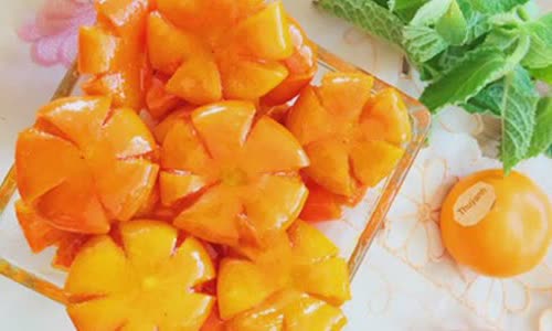 Mứt tắc hình hoa được làm từ những trái tắc chín mộng nước. Mứt có vị ngọt, chua, cay hấp dẫn, được tỉa thành hình hoa mai 5 canh đem đến may mắn cho những ngày Tết đầu năm.